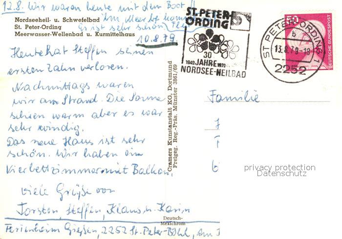 73080108 alte Postkarte Peter-Ording St Fliegeraufnahme Meerwasser Schwimmbad postalisch gelaufen Erhaltung siehe scans [KathaD81] KatCode: 11110001054113