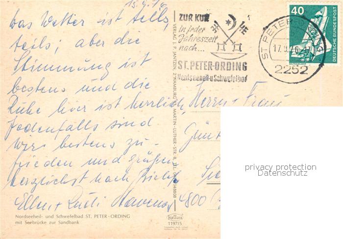73030467 alte Postkarte Peter-Ording St Fliegeraufnahme Seebruecke Sandbank postalisch gelaufen Erhaltung siehe scans [KathaD81] KatCode: 11110001054113