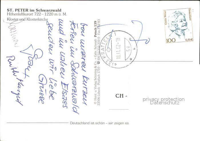 72557600 alte Postkarte Peter Schwarzwald St Kloster Klosterkirche postalisch gelaufen Erhaltung siehe scans [KathaD79] KatCode: 11110008315095