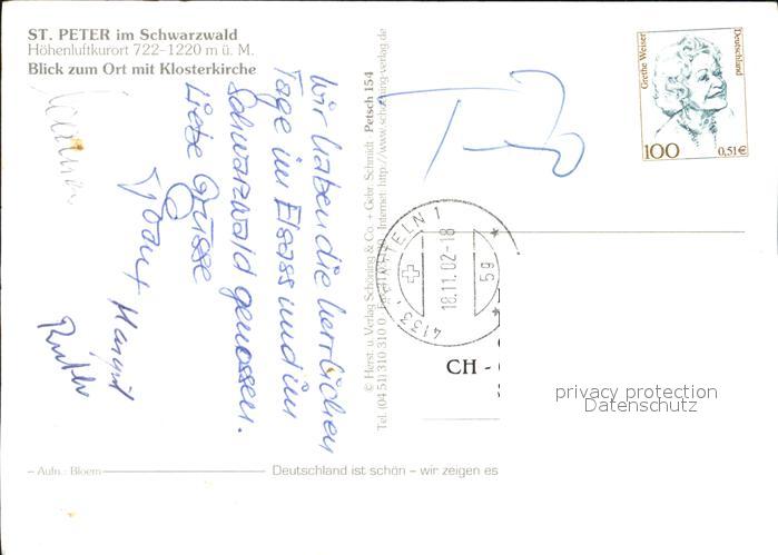 72557599 alte Postkarte Peter Schwarzwald St Klosterkirche Panorama postalisch gelaufen Erhaltung siehe scans [KathaD79] KatCode: 11110008315095