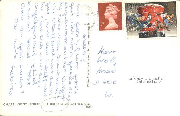 old postcard Peterborough Chapel of St Sprite postalisch gelaufen Erhaltung siehe scans
