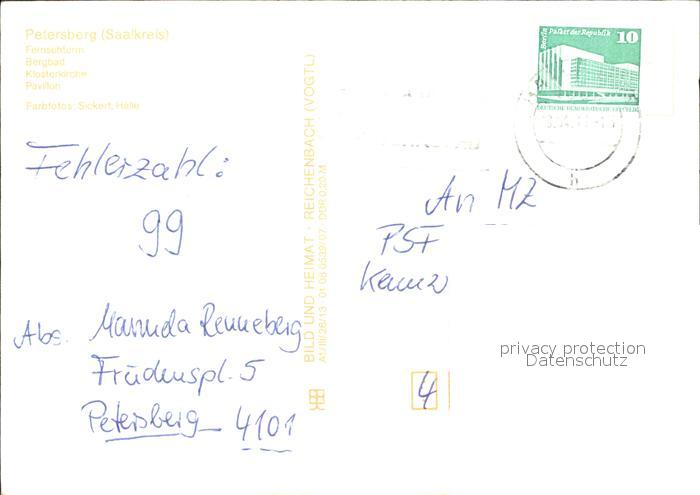 72369948 alte Postkarte Petersberg Halle Bergbad Klosterkirche Fersehturm Pavilon postalisch gelaufen Erhaltung siehe scans KatCode: 11110015088295