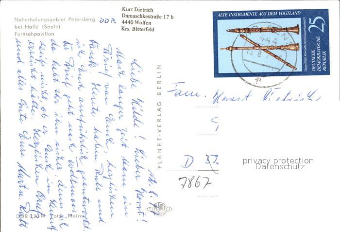 72464497 alte Postkarte Petersberg Halle Fernsehpavillon postalisch gelaufen Erhaltung siehe scans KatCode: 11110015088295