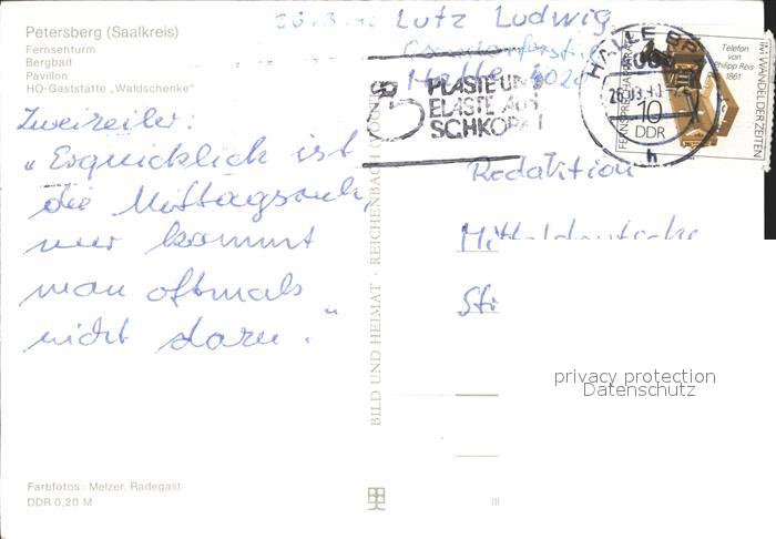 72369949 alte Postkarte Petersberg Halle Fernsehturm Bergbad Pavillon postalisch gelaufen Erhaltung siehe scans KatCode: 11110015088295