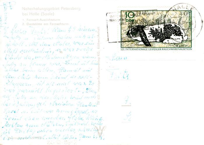 73892465 alte Postkarte Petersberg Halle Fernsehturm Turmrestaurant Gaststaette am Fernsehturm postalisch gelaufen Erhaltung siehe scans [WerneD78] KatCode: 11110015088295