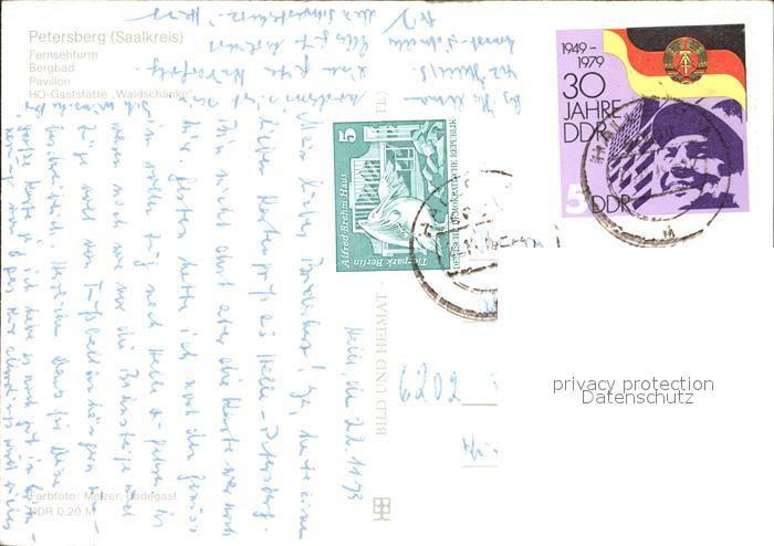 72168424 alte Postkarte Petersberg Halle Fersehturm Bergbad Pavillon postalisch gelaufen Erhaltung siehe scans KatCode: 11110015088295