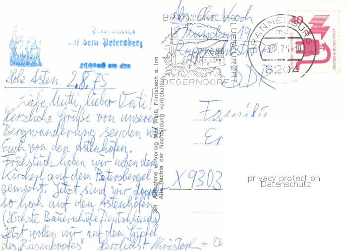 72688108 alte Postkarte Petersberg Inn Panorama Inntal Chiemgauer Alpen postalisch gelaufen Erhaltung siehe scans [FriedD77] KatCode: 11110009187131