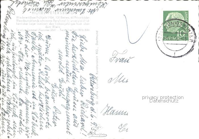 71903511 alte Postkarte Petersberg Koenigswinter Hotel Petersberg Berghotel Siebengebirge Fliegeraufnahme postalisch gelaufen Erhaltung siehe scans KatCode: 11110005382024