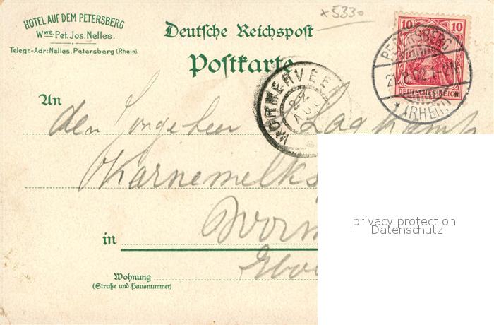 42987016 alte Postkarte Petersberg Koenigswinter Rhein Zahnradbahn Hotel postalisch gelaufen Erhaltung siehe scans [AndreD76] KatCode: 11110005382024