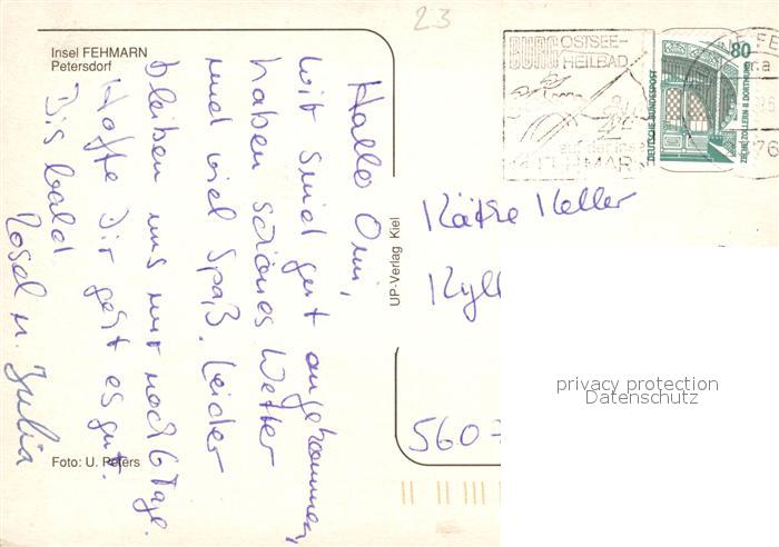 73321625 alte Postkarte Petersdorf Fehmarn Fliegeraufnahme postalisch gelaufen Erhaltung siehe scans [WerneD78] KatCode: 11110001055046