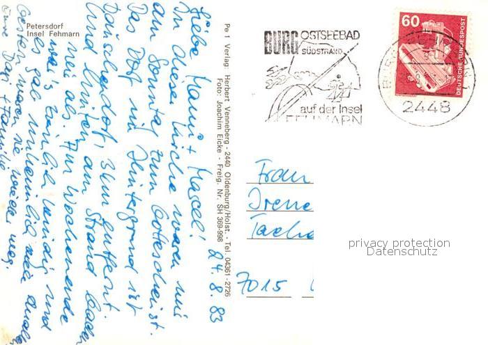 72974865 alte Postkarte Petersdorf Fehmarn Fliegeraufnahme postalisch gelaufen Erhaltung siehe scans [LiesaD40] KatCode: 11110001055046
