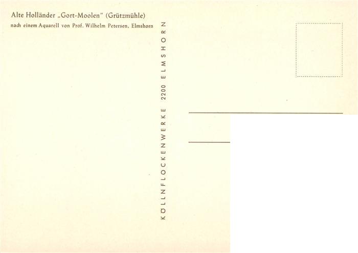 73936470 Petersen Wilhelm Prof. Elmshorn Kuenstlerkarte Alte Hollaender Gort-Moolen Gruetzmuehle postalisch nicht gelaufen Erhaltung siehe scans [IrynaD87] KatCode: 22240000004400