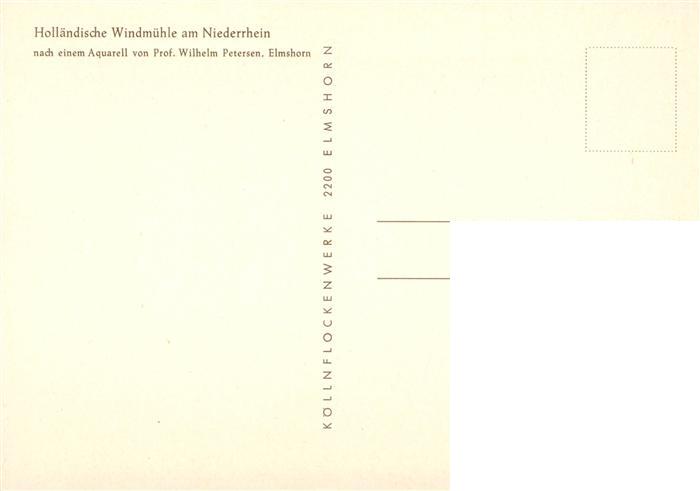 73936464 Petersen Wilhelm Prof. Elmshorn Kuenstlerkarte Hollaendische Windmuehle am Niederrhein postalisch nicht gelaufen Erhaltung siehe scans [IrynaD87] KatCode: 22240000004400