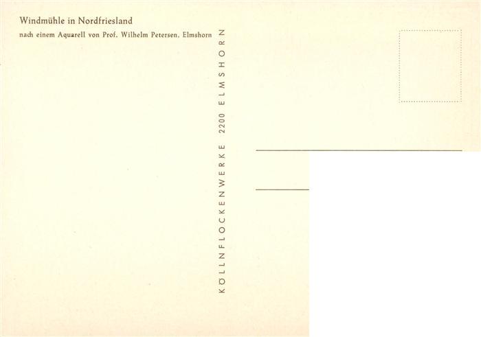 73936465 Petersen Wilhelm Prof. Elmshorn Kuenstlerkarte Windmuehle in Nordfriesland postalisch nicht gelaufen Erhaltung siehe scans [IrynaD87] KatCode: 22240000004400