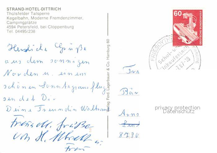 72803601 alte Postkarte Petersfeld Cloppenburg Strandhotel Dittrich Thuelsfelder Talsperre Campingplatz Landkarte postalisch gelaufen Erhaltung siehe scans [FriedD77] KatCode: 11110003453008