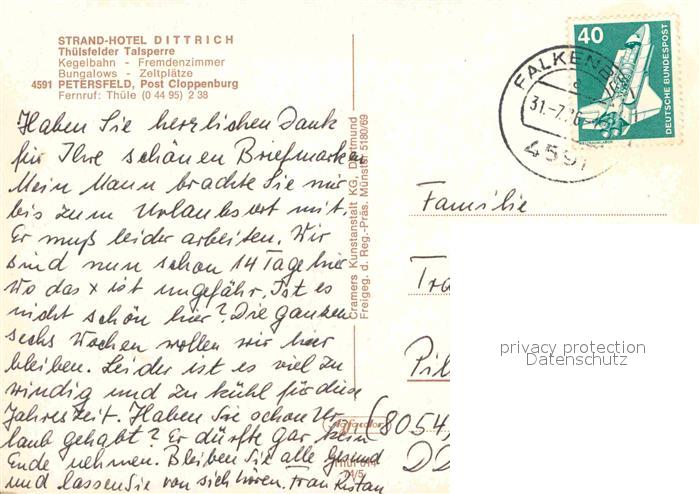 72624773 alte Postkarte Petersfeld Cloppenburg Strandhotel Dittrich Thuelsfelder Talsperre postalisch gelaufen Erhaltung siehe scans [WerneD78] KatCode: 11110003453008