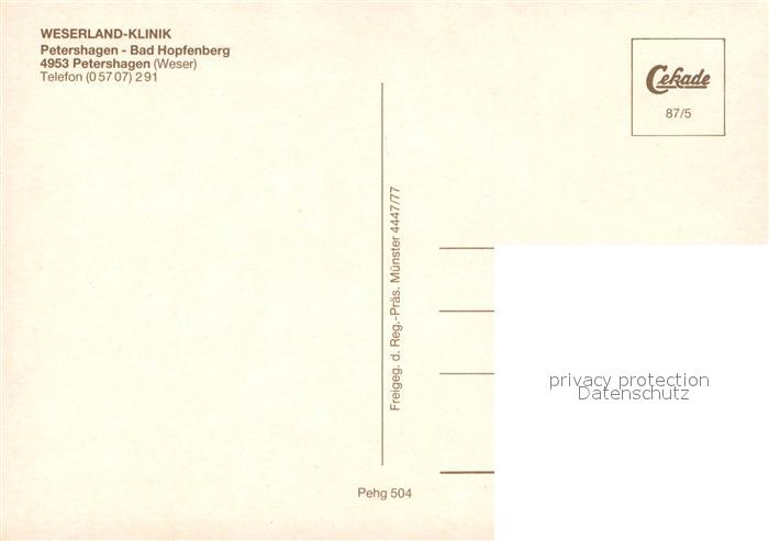73165392 Petershagen Weser Fliegeraufnahme Weserland Klinik postalisch nicht gelaufen Erhaltung siehe scans [KathaD81] KatCode: 11110005770028