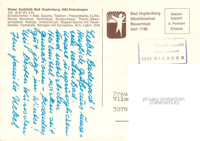 73687764 Petershagen Weser Kurklinik Bad Hopfenberg Hallenbad Speisesaal Sportplatz postalisch nicht gelaufen Erhaltung siehe scans [WerneD78] KatCode: 11110005770028