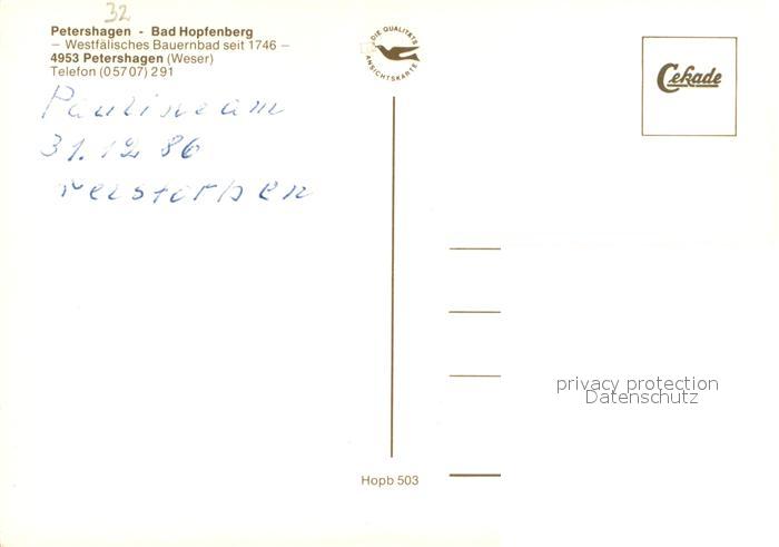 73747657 Petershagen Weser Moorbad Hopfenberg Westfaelisches Bauernbad Hallenbad Freiterrasse postalisch nicht gelaufen Erhaltung siehe scans [WerneD78] KatCode: 11110005770028