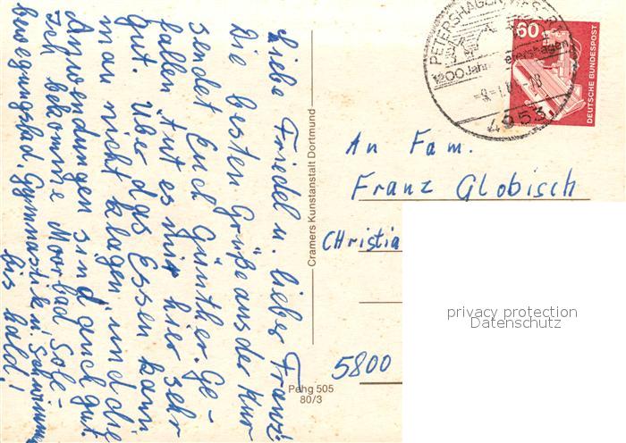 73225431 alte Postkarte Petershagen Weser Schloss Bad-Hopfenberg Hauptstrasse Mindener-Strasse postalisch gelaufen Erhaltung siehe scans [LiesaD40] KatCode: 11110005770028