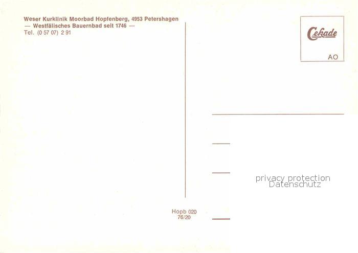 72693878 Petershagen Weser Weser Kurklinik Moorbad Hopfenberg postalisch nicht gelaufen Erhaltung siehe scans [NatalD47] KatCode: 11110005770028