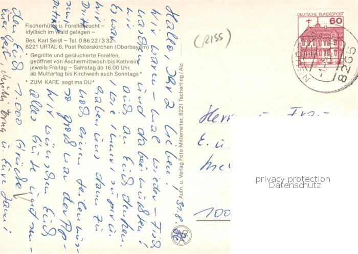 73666366 alte Postkarte Peterskirchen Oberbayern Fischerh?tte und Forellenzucht postalisch gelaufen Erhaltung siehe scans [LiesaD40] KatCode: 11110009189149