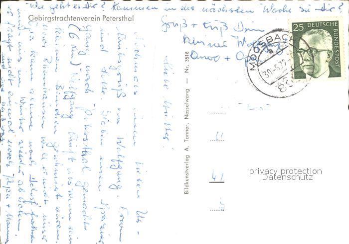 72189913 alte Postkarte Petersthal Allgaeu Gebirgstrachtenverein Tanz Kirche postalisch gelaufen Erhaltung siehe scans KatCode: 11110009780128