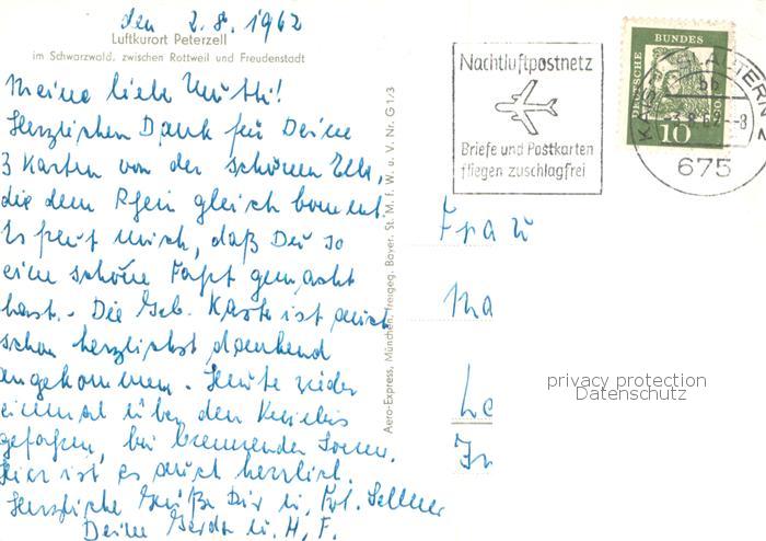 73784616 alte Postkarte Peterzell Alpirsbach Fliegeraufnahme postalisch gelaufen Erhaltung siehe scans [LiesaD40] KatCode: 11110008237002