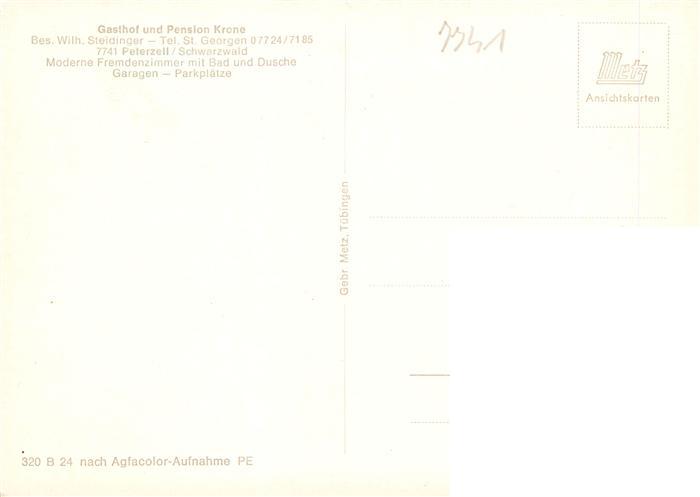 73941850 Peterzell St Georgen Gasthof Pension Krone postalisch nicht gelaufen Erhaltung siehe scans [WerneD78] KatCode: 11110008326052