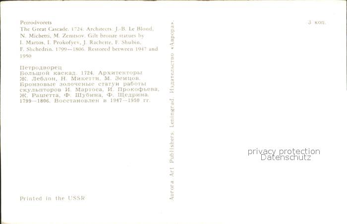 Petrodvorets St Petersburg Great Cascade postalisch nicht gelaufen Erhaltung siehe scans