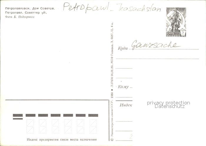 Petropawl Kasachstan Haus der Sowjets Denkmal postalisch nicht gelaufen Ganzsache (eingedruckte Briefmarke) Erhaltung siehe scans