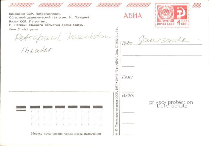 Petropawl Kasachstan Theater postalisch nicht gelaufen Ganzsache (eingedruckte Briefmarke) Erhaltung siehe scans