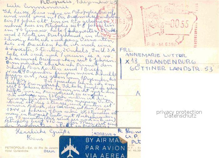 alte Postkarte Petrópolis Hotel Quitandinha postalisch gelaufen Erhaltung siehe scans [KathaD81]
