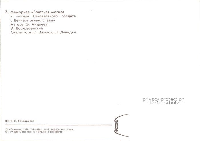 Petrosawodsk Memorial postalisch nicht gelaufen Keine Postkarte (siehe scan) Erhaltung siehe scans