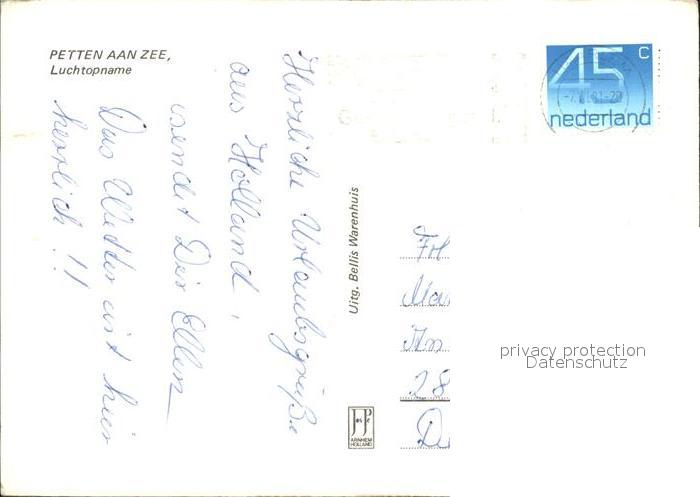 old postcard Petten Luchtopname Fliegeraufnahme postalisch gelaufen Erhaltung siehe scans