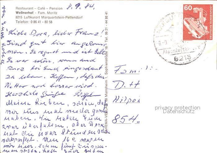72569632 alte Postkarte Pettendorf Marquartstein Restaurant Cafe Pension Wessnerhof postalisch gelaufen Erhaltung siehe scans [LiesaD40] KatCode: 11110009189129