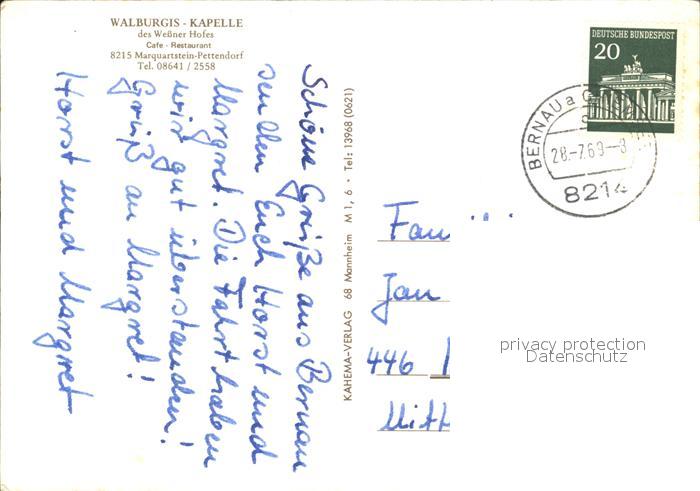 72420870 alte Postkarte Pettendorf Marquartstein Walburgis Kapelle Inneres postalisch gelaufen Erhaltung siehe scans KatCode: 11110009189129