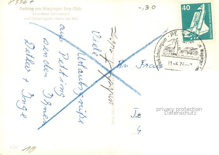 73672500 alte Postkarte Petting Waginger See und Kuehnhausen am Waginger See Campingplatz Viehweide Kirche postalisch gelaufen Erhaltung siehe scans [FriedD77] KatCode: 11110009189135