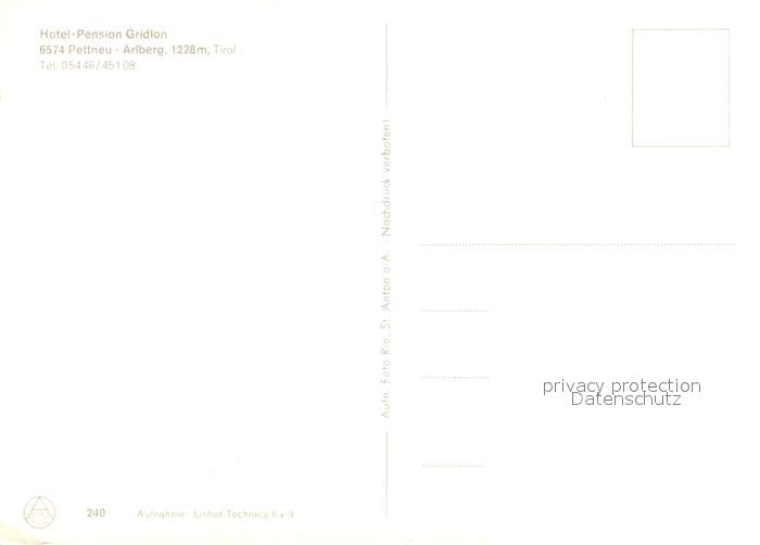 13631036 Pettneu Arlberg Hotel Pension Gridlon Swimming Pool Stanzer Tal Alpen postalisch nicht gelaufen Erhaltung siehe scans [FriedD77] KatCode: 11390334070616