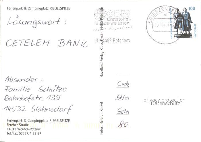 72035343 alte Postkarte Petzow Ferienpark Campingplatz Riegelspitze Frosch postalisch gelaufen Erhaltung siehe scans KatCode: 11110012069656
