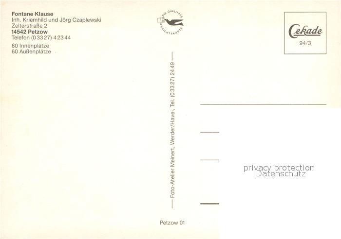 73659383 Petzow Fontane Klause postalisch nicht gelaufen Erhaltung siehe scans [LiesaD40] KatCode: 11110012069656