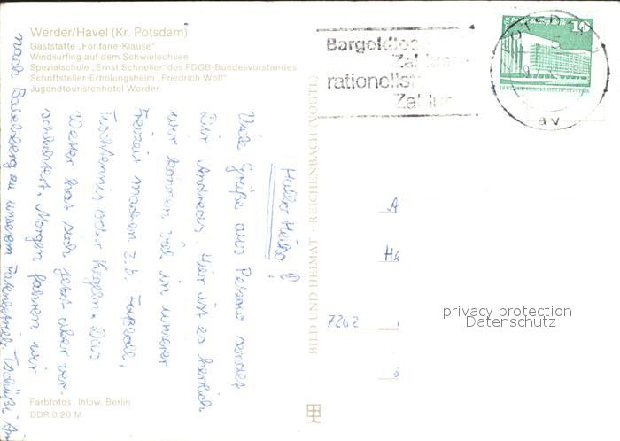 72135762 alte Postkarte Petzow Gaststaette Windsurfing Schwielochsee Schule Ernst Schneller Erholungsheim Hotel postalisch gelaufen Erhaltung siehe scans KatCode: 11110012069656