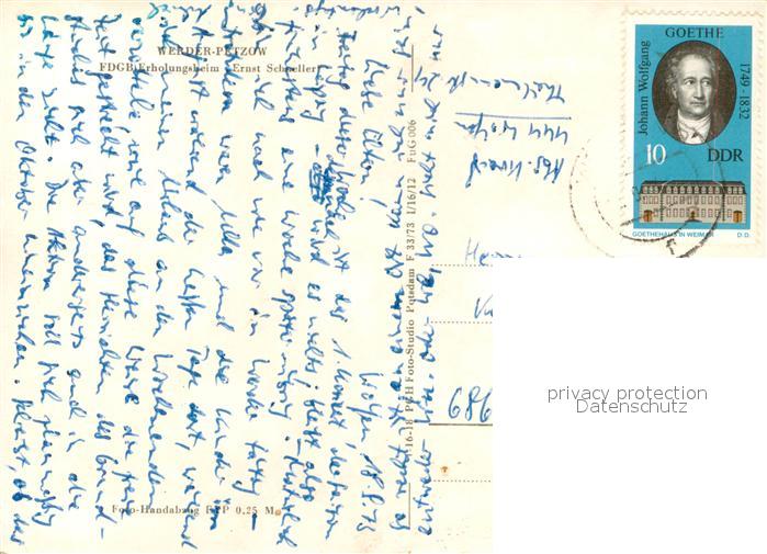 73739120 alte Postkarte Petzow Werder FDGB Erholungsheim Ernst Schneller postalisch gelaufen Erhaltung siehe scans [FriedD77] KatCode: 11110012069656