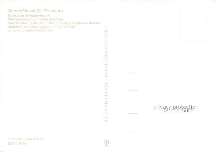 72547363 Petzow Werder Gaststaette Fontane Klause Schwielochsee Surfer Spezialschule Ernst Schneller Schriftsteller Erholungsheim Friedrich Wolf Jugendtouristenhotel Werder postalisch nicht gelaufen Erhaltung siehe scans [WerneD78 kv017box] KatCode: 11110012069656
