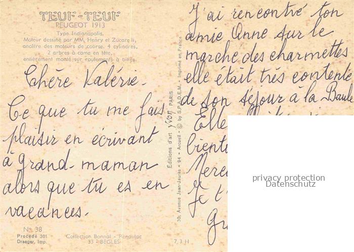 74065894 PEUGEOT Autos Cars Voitures– 1913 Teuf Teuf Type Indianapolis postalisch nicht gelaufen Erhaltung siehe scans [IrynaD87] KatCode: 22020000000300