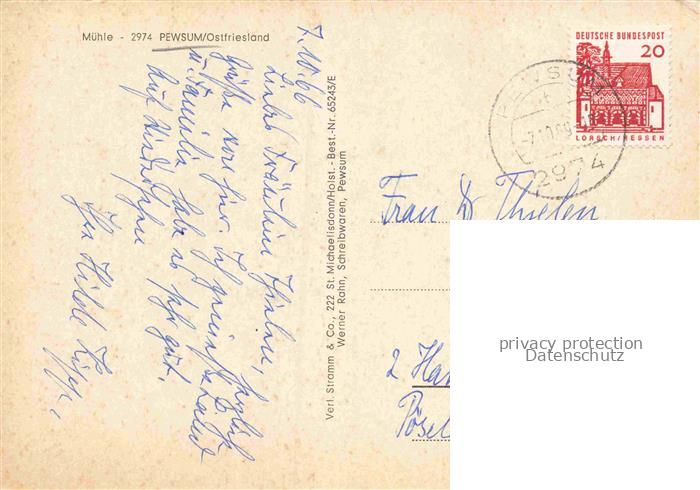 74153487 alte Postkarte Pewsum Krummhoern Niedersachsen Windmuehle postalisch gelaufen Erhaltung siehe scans [FriedD77] KatCode: 11110003452014