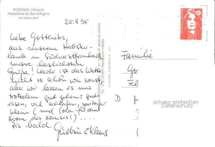12432635 carte postale Pezenas Hostellerie du bat d`Argent postalisch gelaufen Erhaltung siehe scans KatCode: 11170034134199