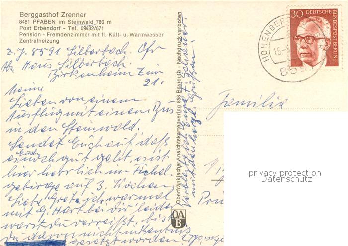 73722309 alte Postkarte Pfaben Berggasthof Zrenner Terrassenansicht postalisch gelaufen Erhaltung siehe scans [LiesaD40] KatCode: 11110009377116