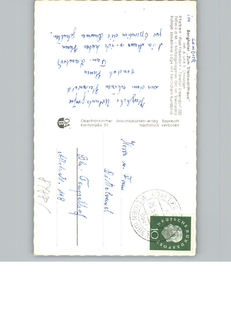 31161514 Pfaben Berghotel zum Steinwaldhaus postalisch nicht gelaufen KatCode: 11110009377116