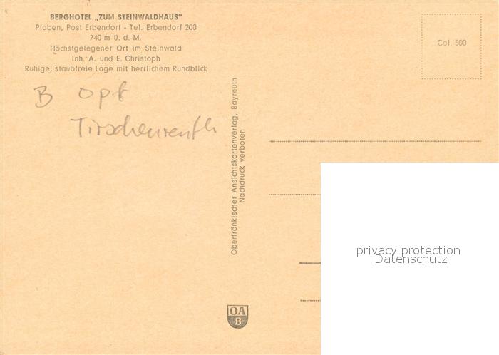 73662944 Pfaben Berghotel Zum Steinwaldhaus postalisch nicht gelaufen Erhaltung siehe scans [FriedD77] KatCode: 11110009377116